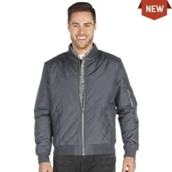 Our new Men’s Quilted Boston Flight Jacket is a fresh take on a classic. This fashion-forward jacket is wind and water-resistant and fully lined to keep you warm in cooler weather. This jacket offers a quilted styling on a modern silhouette, with rib knit trim on collar, sleeve cuffs, and bottom band to keep the cool air out. It’s silver metal zipper and zippered sleeve pockets add unique details.